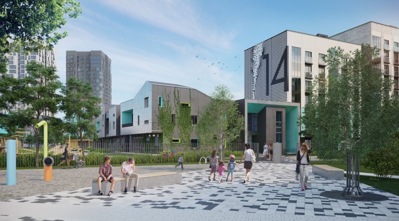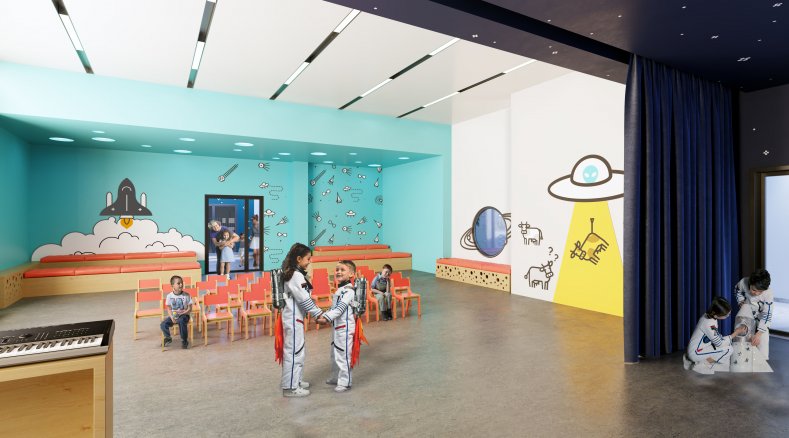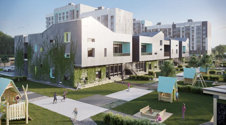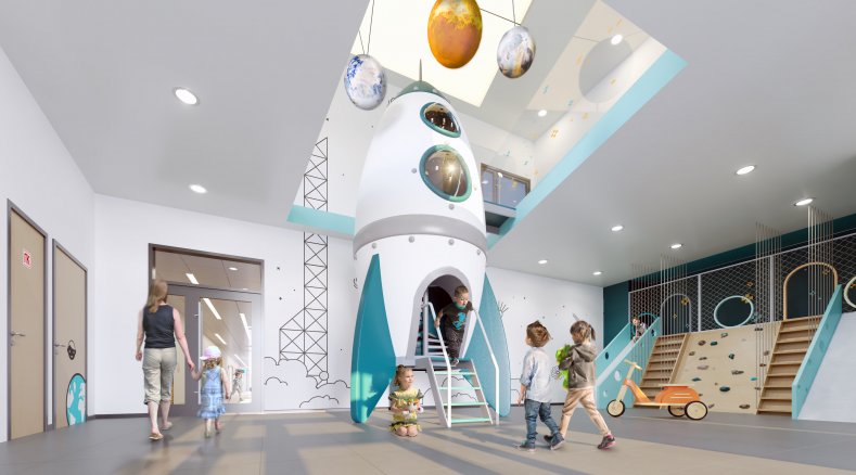 Снаружи здание выглядит совершенно нестандартно: у него темно-серый фасад, который скоро украсит вертикальное озеленение. Окружающие его детские площадки – тематические: каждый комплекс посвящен своему виду путешествий. Здесь есть и морское судно, и космический корабль. В целом по планировочному решению этот детсад похож на первый садик, построенный в Новой Боровой – «Желтый жираф». Также есть двухэтажные группы, экспозиции для выставки работ малышей, похожие кухня и медблок. «В феврале мы открыли детский сад «Желтый жираф», в котором уже сейчас половина воспитанников – дети жителей Новой Боровой. Тогда мы пообещали, что осенью откроем еще один садик на 150 мест. Прошло полгода – и мы выполнили это обещание. Детский сад «Космос», до мелочей продуманный лучшими специалистами «А-100 Девелопмент» с заботой о детях, стал возможным только благодаря большому опыту компании в возведении социальной инфраструктуры. Уже в этом году мы начнем строительство третьего детского сада в Новой Боровой», - отмечает начальник управления маркетинга компании Екатерина Лапушинская.