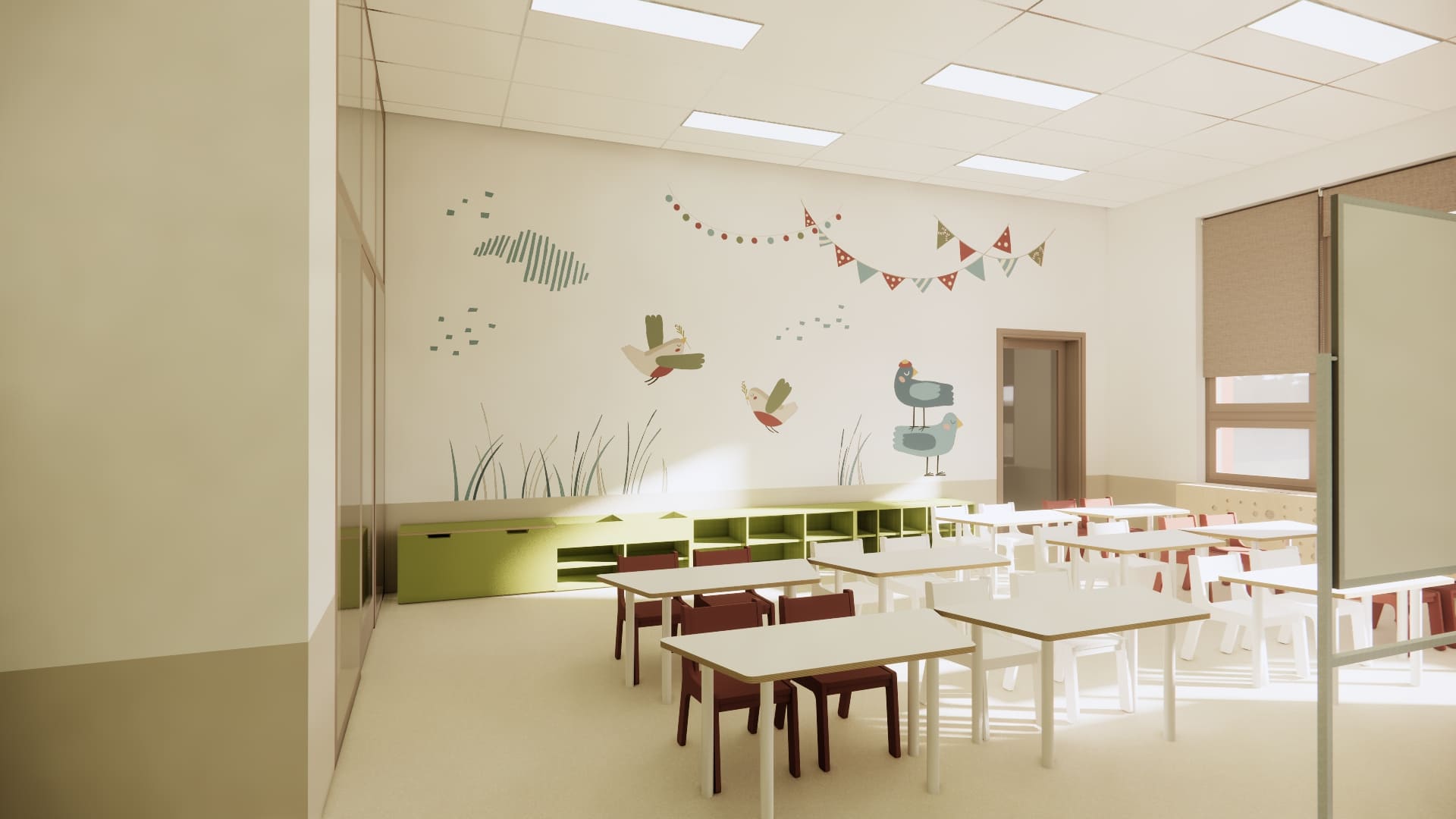 Спортивный и музыкальный залы оснащены современным оборудованием: инвентарем, проектором, синтезатором и даже собственным кукольным театром. Медицинский блок включает кварцевые лампы, изолированные палаты и отдельные санузлы. На полностью оборудованной кухне пищу будут готовить на месте, а развозить по этажам — с помощью специального лифта.