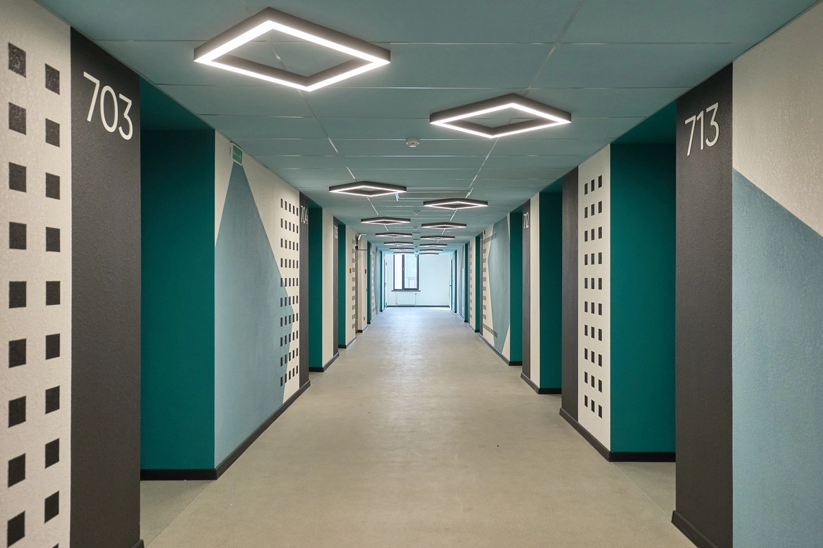 - Все зоны адаптированы для людей с ограниченными возможностями. Широкие проходы, пандусы, лифты, доступ ко всем кабинетам и зонам обслуживания — всё для создания безбарьерной среды.