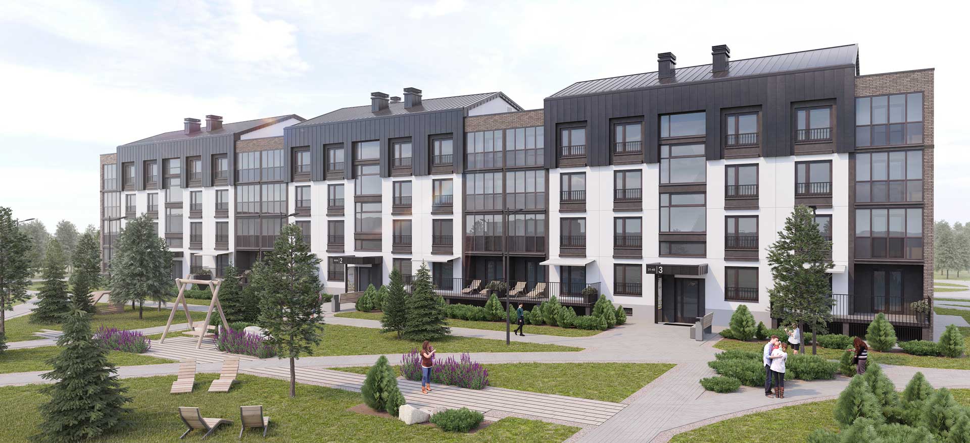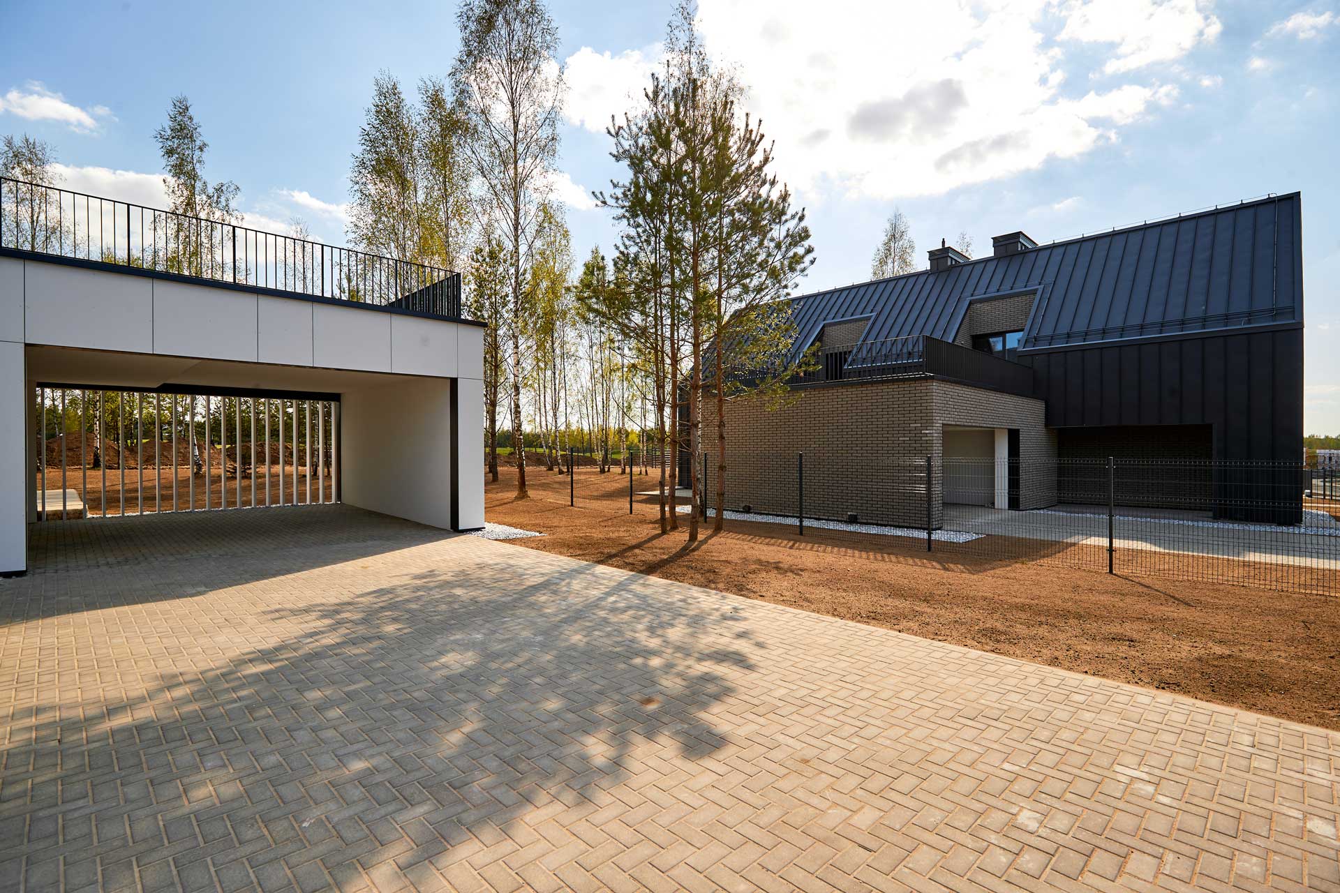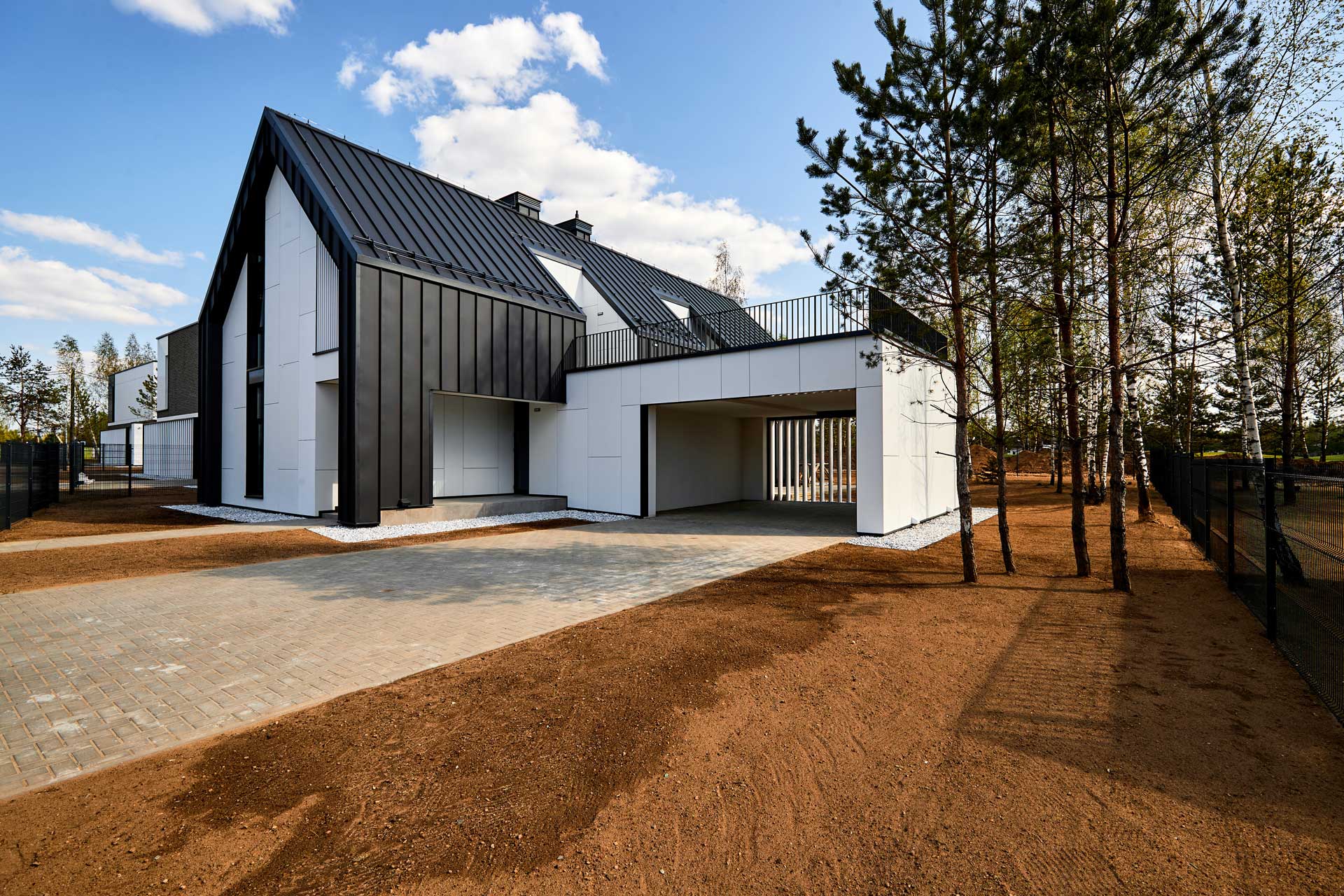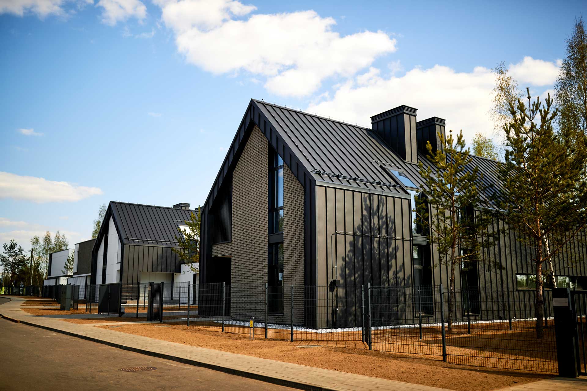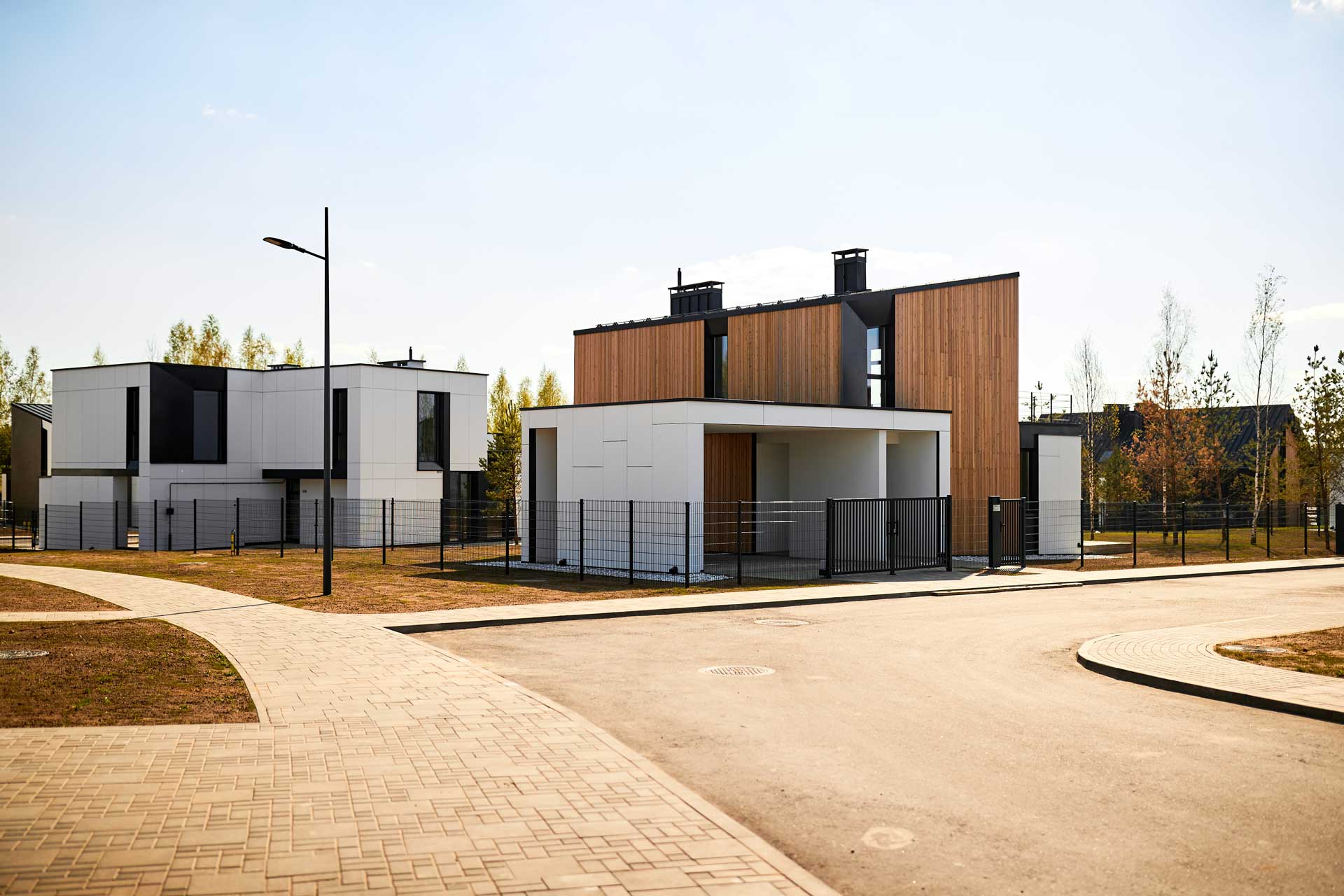 The development concept, which includes the most delicate integration of the residential complex into the natural environment and the preservation of the existing terrain, was developed by the English architectural bureau JTP Architects. And the houses themselves in the same Scandinavian style have already been created by Belarusian architects.